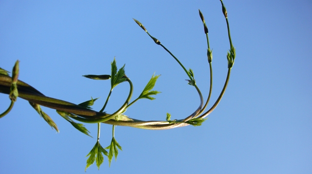 Endlich ist der Sommer angekommen. Also raus in die Natur. Wer will, kann sich hier dieser Tage im Mai mit Hopfensprossen versorgen. Über Gebüsch, an Hecken und Zäunen überall wuchern zurzeit die grünen Ranken. Hopfen ist Vielen nur als wichtige Zutat in Bier...